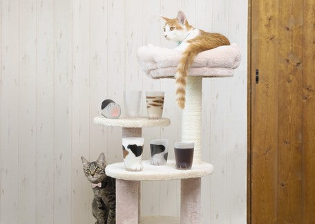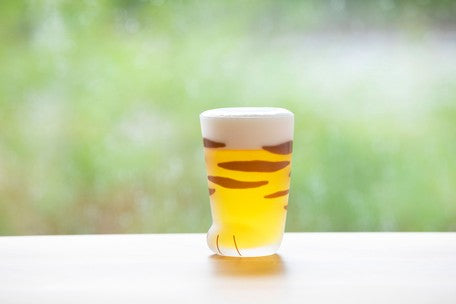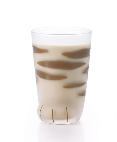 Embrace the bold and striking design of this Coconeco Cat Paw Glass featuring a classic tabby cat fur pattern. This 300ml adult-sized tumbler is meticulously handcrafted by skilled Japanese artisans, featuring a frosted glass finish and adorable pink paw pads printed on the bottom.