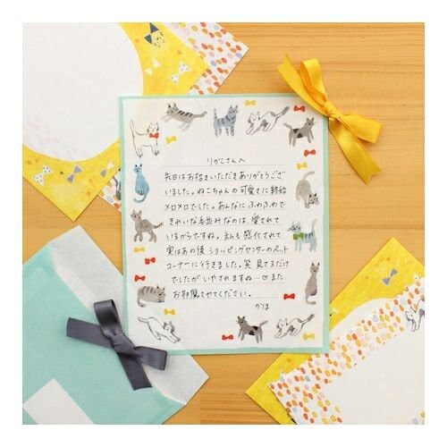 Made with premium quality Mino-washi paper, the set contains 3 different designs of letter paper (2 sheets each), with a super cute cat theme. There are also 3 envelopes included, each with a different design. Have fun choosing which design to write on, and put pen to paper!