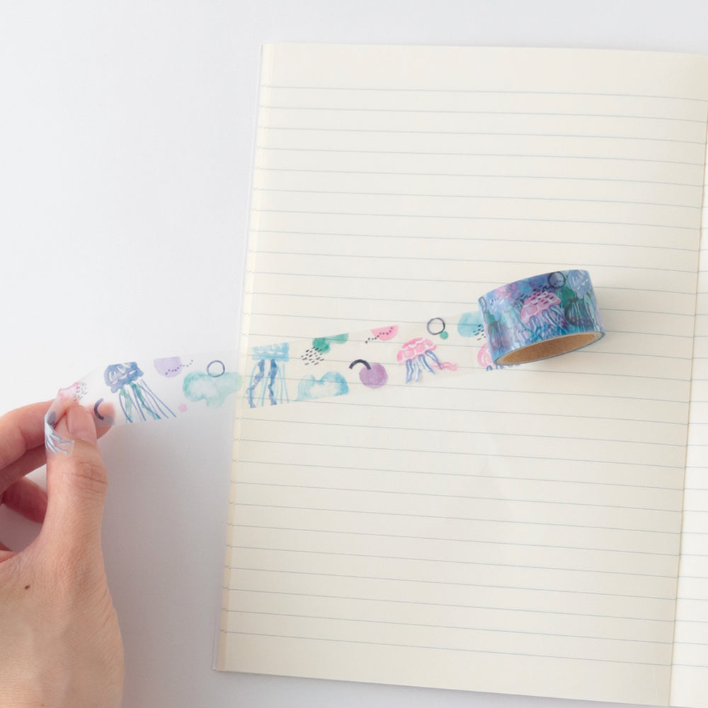These clear masking tapes from Japanese brand GreenFlash feature a beautifully illustrated jellyfish design, sure to look great in a wide variety of decorative applications.