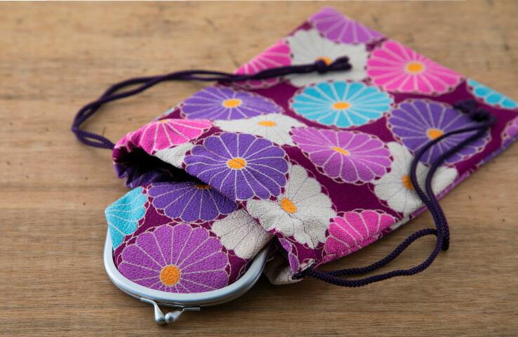 These gorgeous drawstring pouch have been lovingly made in Japan, from traditional fabric called Chirimen. Developed in the 16th Century, Chirimen has a unique "wavy" texture and is often used in Kimono, hair ornaments (kanzashi) and Furoshiki bags too.
