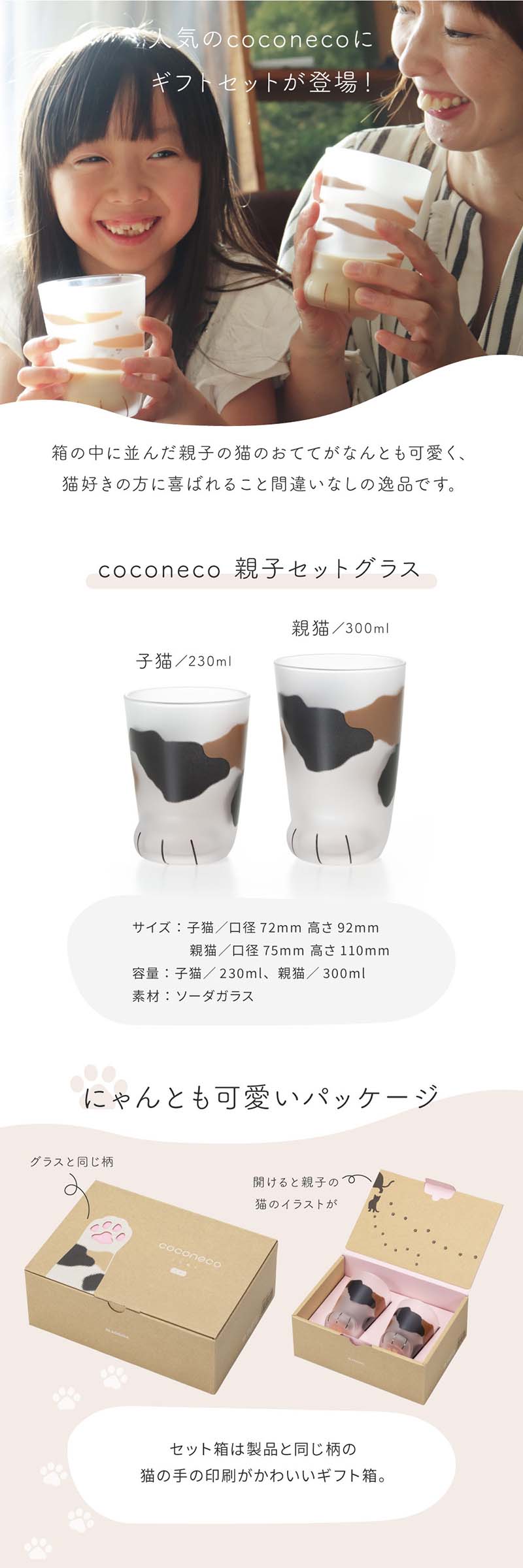 A truly adorable gift set for cat lovers of all ages! This Coconeco cat paw glass set features a sweet calico cat design, with one adult-sized tumbler (300ml) and one kitten-sized tumbler (230ml). Each glass is crafted with care by Japanese artisans, offering a charming and unique design.