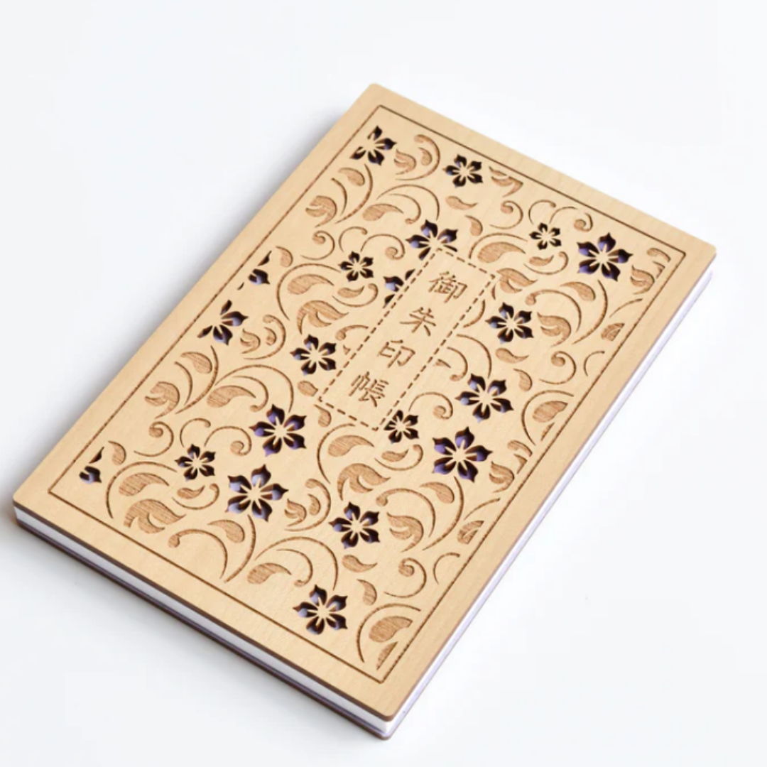 Celebrate the beauty of Japan with this beautifully crafted Goshuin stamp book, featuring a laser-cut wooden cover adorned with a pretty floral design. The intricate carving adorned with delicate purple flowers brings a classic yet sophisticated touch to the cover, blending tradition with modern design.