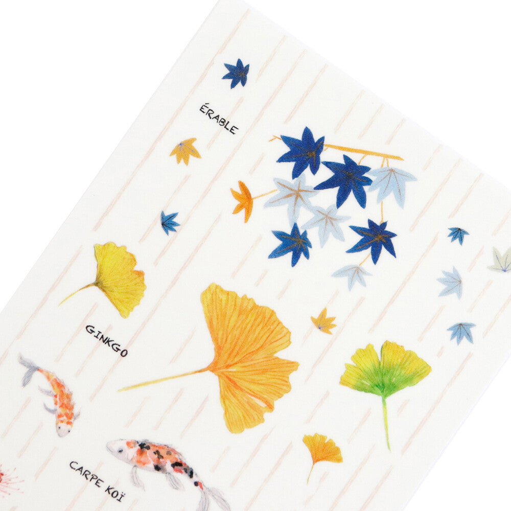 From golden ginkgo leaves and fiery Japanese maple (érable du Japon) to vibrant chrysanthemums, ferns, and graceful koi carp, each sticker is a miniature work of art that brings the poetry of fall to your journal, letters, or craft projects.