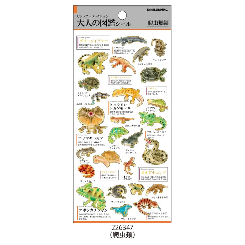 Bring the fascinating world of reptiles to your projects with this collectible sticker pack from Kamio Japan. Featuring detailed illustrations of everything from slithering snakes to sunbathing lizards and impressive turtles, this sheet is perfect for adding an exotic and colourful touch to your planners, scrapbooks, and stationery.