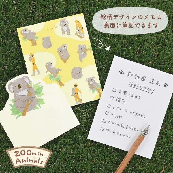 Playful Koala bears feature as the star of this memo pad from Japanese stationery brand NB! In this pack you'll discover a die-cut design and all-over print design where you can write on the back, full of happy Koalas clutching their favourite pieces of bamboo!
