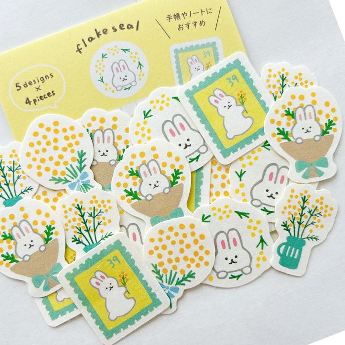 Celebrate the beauty of spring and Easter time with this limited edition set of Mimosa Bunny flake stickers. Featuring adorable bunnies surrounded by delicate mimosa flowers, these beautifully illustrated stickers add a touch of warmth and whimsy to your creative projects.