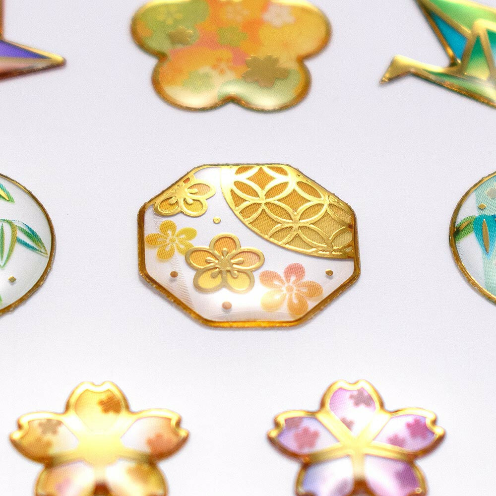 The raised resin dome effect adds a luxurious depth and glossy finish, enhancing the intricate gold detailing for a truly refined look. Perfect for journals, planners, scrapbooks, and gift wrapping, these elegant stickers bring a touch of timeless Japanese charm to any creative project.