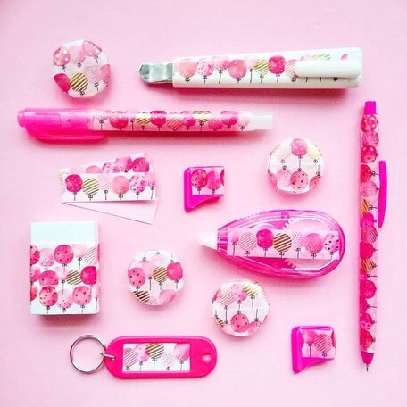 Colour / Design: White background with pink / gold balloons (see product photo)