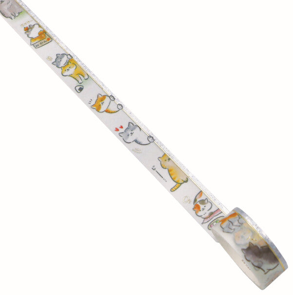 Let these curious kitties peek into your pages! This vertical washi tape features a lineup of adorable cats peeking out from the side, accented with sparkling gold foil for a hint of shimmer. Perfect for marking the edge of notebook pages, planner dividers, or as a quirky border.