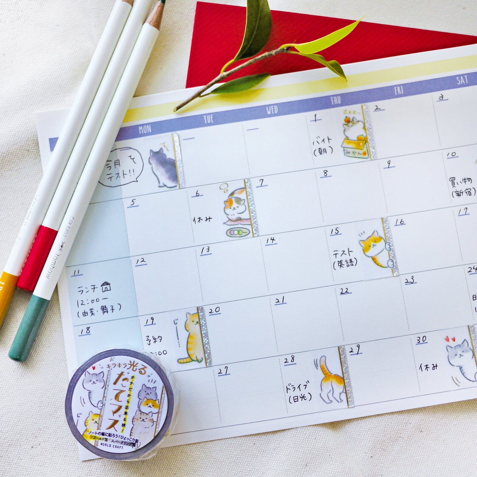 World Craft Vertical Washi Tape - Peeking Cats