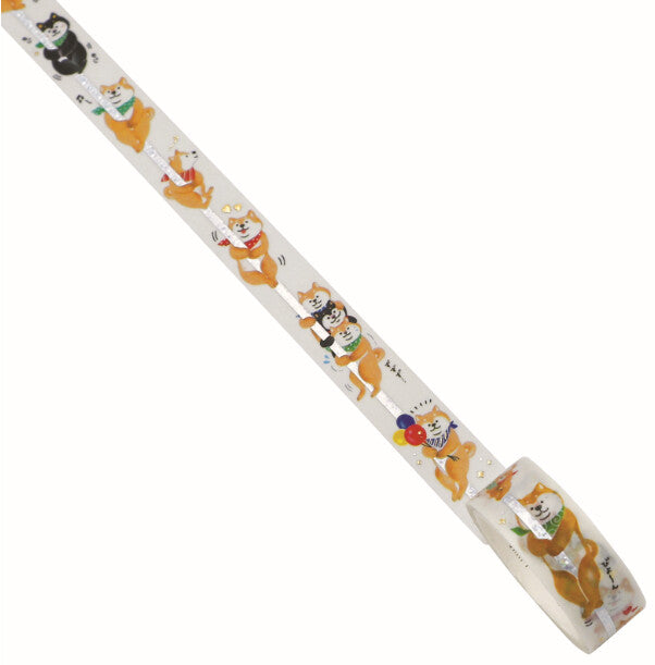 These cheeky Shiba Inus are ready to climb their way into your heart (and your journal)! This fun vertical washi tape features a stack of playful Shibas clinging to a pole, with heart and sparkle details finished in shiny gold foil. Perfect for marking the edge of notebook pages, planner dividers, or as a quirky border.