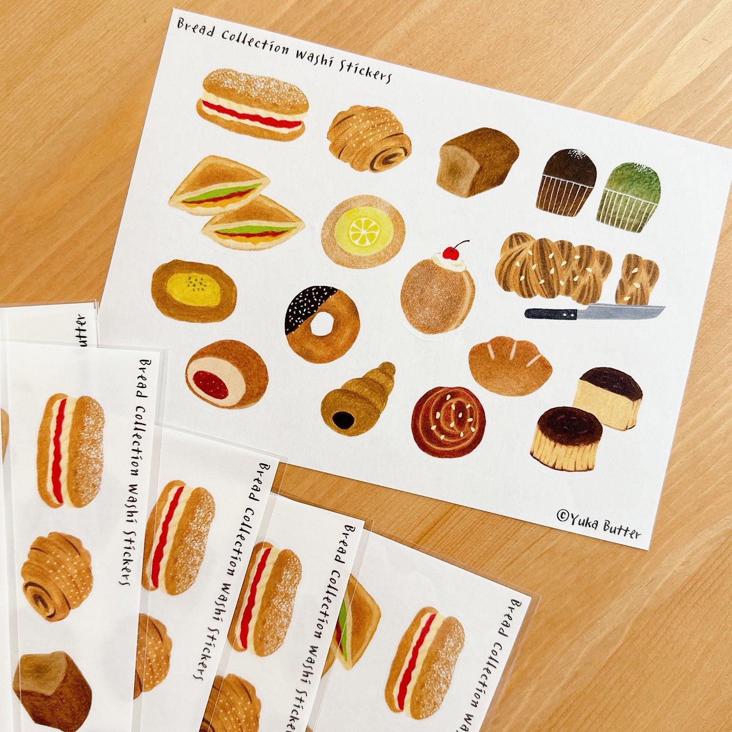 Yuka Butter Washi Sticker Sheet - "Bread Collection" (A5 Size)